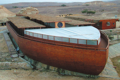 הראש היהודי ממציא לנו פטנטים משמאלנו ניצבת יצירה מפעימה שנראית כמיראז' בערבה הענקית: דגם תיבת נח בממדים של שיכון רכבת צנוע. כאילו מבול נוסף סחף את התיבה המקראית מהר אררט אל טבורה של הערבה הישראלית. זאת התיבה השנייה שבנו האחים במו ידיהם. הראשונה נשרפה כליל. כשפרצה האש שהו האחים בקומה הראשונה של התיבה, וכשגברה – נמלטו החוצה והביטו בעיניים כלות בשנתיים של עבודה עולות בעשן. בתוך פחות משעה הפכה היצירה הסוריאליסטית לערמת אפר, ומאות אלפי שקלים הפכו לרמץ לוחש. אבל בן סבור שגם זה היה לטובה: התיבה החדשה מצופה בחומרים דוחי אש, ויש בה פתחי חירום ומטפי כיבוי לרוב.מול התיבה והמזנון חי מין האנטילופות היחיד בחווה שנכלא מאחורי גדר. אלה הן Barbary Sheep בלעז, כבשי הרעמה שמוצאן בהרי האטלס שבמרוקו. "תמיד דופקים את המרוקאים", מסנן בן ומגלה שיש לכבשים הללו דם חם שגורם להן לתקוף כמעט כל אנטילופה אחרת. "חייבים לכלוא אותן, למרות שמבני אדם הן דווקא פוחדות. לפחות אצלנו לא עושים מהן קרקס כמו בגני חיות באירופה, שם מצרפים להן קופים והם רוכבים עליהן. כבר אמרתי שהמרוקאים נדפקים?"