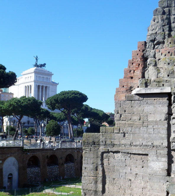 עוד אופציה לביקור אם אתם כאן הוא הפורום הרומי או בשמו הלטיני פורום רומאנום. הפורום שימש בתקופת האימפריה הרומית לאספות עם ולמשפטים פומביים, ומשני צדדיו היו חנויות ושווקים. השרידים שנותרו ממנו מרשימים להפליא, ולמעשה הוא אחראי באופן חלקי לצעקת ההתפעלות שפרצה מפי (זאת שהוזכרה בפתיחת הכתבה). אם דילגתם על הקולוסאום, המשיכו מלבה של שכונת מונטי לאורכו של רחוב ליאוניה (Via Leonia) עד סופו, שם הוא מתחבר לרחוב עצום ורחב עד מאוד – Via dei Fori Imperiali. בנקודה הזאת בדיוק אין ברירה אלא לעצור – ומותר גם לצעוק מהתלהבות למראה מה שנפרש מכל עבר: ממולכם האנדרטה הלבנה לזכרו של ויטוריו עמנואל השני, עם פסלי כרכרות הסוסים בראשה, מאחוריכם הקולוסאום, שאמנם עטוף בפיגומים אך עדיין מדהים בעוצמתו, משמאלכם השרידים המרשימים של הפורומים הרומאים, ובינות להם מבצבצים בתיה העתיקים של שכונת מונטי. ואם לא די בכל אלה, מעבר לפורום מבצבצות הכיפות היפות של כנסיית השם הקדוש של מריה (Santissimo Nome di Maria). ובתווך: אינספור מכוניות ובני אדם ממשיכים בשגרת יומם כאילו ריכוז עצום ומתומצת כל כך של יופי הוא דבר מובן מאליו. הפורום הרומי ואנדרטת ויטוריו עמנואל נגלים להולכים בוויה די פורי אימפריאלי
