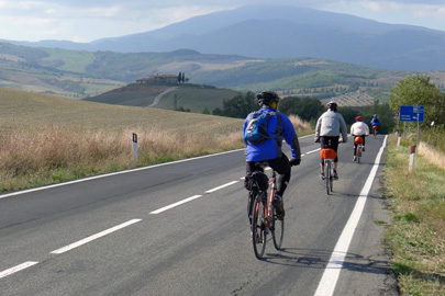 הגבעות הרכות של טוסקנה משמשות רקע מושלם לטיול האופניים