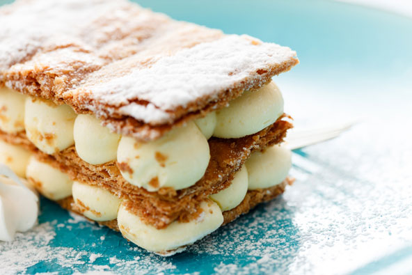 מומלץ במיוחד: מילפיי פרלינה (millefeuilles praliné) , קינוח אישי עשוי מבצק עלים מקורמל עם שכבות של קרם חמאה ומחית נוגט. איך אומרים בצרפתית? מאניפיק.