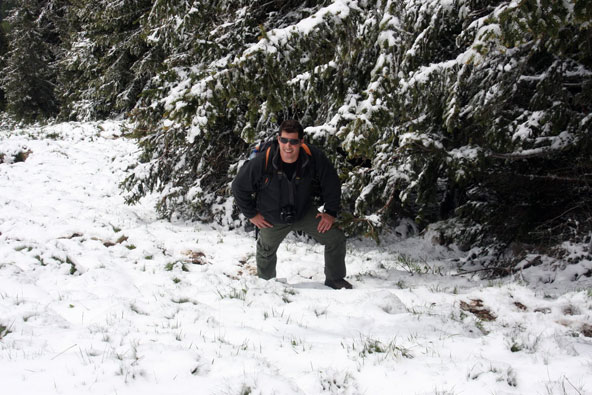 לאחר צעידה של כשני קילומטרים הגענו אל עמדת התצפית. לאחר בדיקה מהירה של השטח, הרשנו לעצמנו לחייך בסיפוק: כל הסימנים – הענפים השבורים, העקבות, שיירי המזון – העידו כי הלילה נזכה לתצפית איכותית בדוב החום, אולי אפילו נזכה לצלם נקבה בחברת גוריה הקטנים. לאחר סריקה מקיפה של השטח, הצבנו מצלמת אינפרא אדום, לצילום אוטומטי של הדובים בלילה, וטיפסנו אל עמדת התצפית.