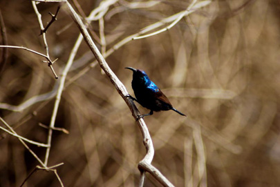 נזכרתי כיצד בילדותי היינו מכינים משרוקית מאולתרת מפרי החרוב: מחוררים את החרוב ונושפים פנימה, ושריקה עזה היתה נשמעת. אנחנו ממשיכים, ומולנו מתגלות שבכות של שיחי צבר, ששרידי סברסים קמוטים שמוטים על עליהם הבשרניים. ציפורים שחורות עומדות על עלי הצבר ומנקרות את הפירות. מימין שדרה יפהפייה של ברושים, הנראים כנרות נשמה, ובין ענפיהם קבוצות של עורבים שנתנו קולם בקרקור. דררות צבעוניות, שציוצן מחריש אוזניים, עסוקות בטקסי חיזור. הדררה היא ציפור פולשנית, שהתאזרחה בישראל רק בסוף שנות ה-80 של המאה שעברה, וכאן אנחנו רואים אותה שוב ושוב. הגענו לצומת דרכים, ובחרנו בדרך שהתעקלה מערבה. כמה עצי תמר, עצי תאנה, שקמים, אשלים ואפילו שיחי אטד. מקום מושלם לספר לילדים את משל יותם: "הלוך הלכו העצים למשוח עליהם מלך"… כזכור, שיח האטד הנמוך היה זה שהעצים רצו להמליך עליהם – משל לניסיונות של בני ישראל להמליך אנשים שאינם ראויים.
