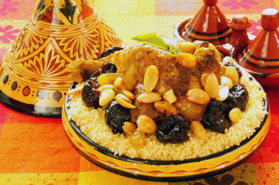 חוויה אחרת לגמרי חווים בכניסה לבית הכנסת בפאס. הטיול מחבר אותך למורשת של יהדות מרוקו, אתה מגלה את מורכבות הקהילה, את ההיסטוריה שלה, המאבקים בין קדמה למסורת, בין העיר לכפר. יש משהו מאוד חזק ועוצמתי בחיבור הזה למסורת היהודית.  טאג'ין של עוף עם שקדים ושזיפים על מצע של קוסקוס