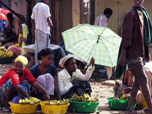 אם הייתם שואלים אותנו לפני שנתיים איפה יהיה הטיול הבא שלנו, סביר להניח שהתשובה לא היתה אפריקה. אפריקה תמיד נתפסה בעינינו כחמה, יבשה ומסוכנת, והעדפנו לטייל במקומות ירוקים ומושלגים. ובכל זאת הגענו לאפריקה, לטיול בן ארבעה חודשים שכלל את אתיופיה, קניה, אוגנדה וטנזניה. שנינו טיילנו כבר במדינות עולם שלישי, אבל שמחה ופשטות כמו שמצאנו באפריקה לא ראינו בשום מקום אחר. ובניגוד לכל הציפיות שלנו, היה הכי ירוק שראינו אי פעם, פגשנו את האנשים הכי נחמדים בעולם, ואפילו לא היה חם. איפה התחלנו? באדיס אבבה (Addis Ababa), כמובן. בירת אתיופיה נמצאת פחות או יותר במרכז המדינה, כך שהחלטנו להקדיש שבועיים לצפון אתיופיה, לחזור לאדיס, ואז לרדת לשבועיים דרומה. הנחיתה באדיס לא פשוטה. ארבע שעות אחרי הפיצה בנתב"ג, ואנחנו בעולם אחר. ללא מדרכות, ללא בניינים, הכל אפור. לא ידענו לאן ללכת, אז תפסנו מונית משדה התעופה לפיאצה, אזור במרכז העיר שבו מרוכזים המלונות הזולים. אדיס אבבה: להתגבר על הלם התרבות אחרי שהתגברנו על הלם התרבות, יצאנו להצטייד באוכל וגז. גז לגזיית ניקוב מצאנו אצל בחור בשם אמיר, שסיפק לנו במהירות ויעילות חמישה מיכלים. מכאן פנינו לשוק, כדי לקנות מצרכים. שוק הירקות נמצא ליד הפיאצה, אבל אף אחד לא הסכים למכור לנו פחות מקילו ירקות, כשכל מה שרצינו היו שני בצלים, חמש עגבניות וראש שום אחד. גם לחם קשה למצוא באתיופיה, שם אוכלים בעיקר אינג'ירה. בכפרים יש מאפיות שמוכרות לחמניות, אבל באדיס לא מצאנו שום מאפייה. כשיוצאים מאדיס לערים הקטנות ולכפרים אין שום בעיה למצוא חנויות שמוכרות פסטה ואורז, וירקות קונים בדוכנים.