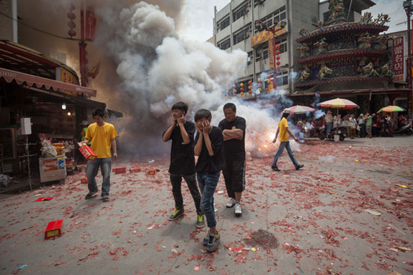 החוויה במקדש צ'או טיאן היא מתקפה על כל החושים. תקיעת הצופרים, פיצוצי הזיקוקים ורעם התופים יוצרים פסקול ייחודי, בעוד שגיצי הזיקוקים האדומים, העשן והאפר משתלטים על מרחב הראייה. ההמולה הרבה מתנקזה כולה לרחוב אחד ותשומת הלב של המשתתפים בחגיגות מוסחת בכל רגע למוקד אחר.