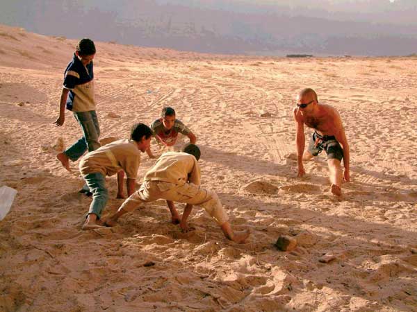 בכפר רם אנחנו פוגשים גם את יונתן ברלב ואת ז׳ניה פפיר. יונתן טיפס במקום 15 פעמים, והבחירה בירדן כיעד לטיפוס נראית לו ברורה. ״המס בגבול זול מכרטיס טיסה לכל מקום״, הוא צוחק ומוסיף שהוא אוהב את ירדן. ז׳ניה, מדריך בארגון מדריכי הטיפוס של המזרח התיכון, ביקר בוואדי יותר מעשר פעמים, והוא מציין את האווירה ואת הנוף כגורמי המשיכה. "לא משנה מה אתה עושה – מטפס או מטייל, התפאורה מסביב מרשימה. האוויר, החול, הממדים של הדברים – הכל עצום. אתה רוצה לעבור לגבעה הבאה, וצריך לחצות ים של חול שייקח לך שלוש שעות". אבל מספיק עם הדיבורים. הולכים לישון.