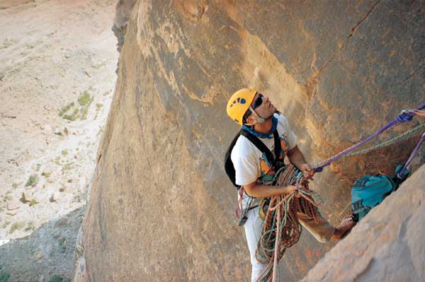 ואדי רם שבדרום ירדן נמצא במרחק נסיעה של שעה בערך צפונית־מזרחית לעקבה. רוב אוכלוסיית המקום, בדואים בני שבט החוויטאת, מתפרנסים מתיירות. אף שפני השטח שלו מדבריים והוא חף מאטרקציות תיירותיות כדוגמת פטרה הסמוכה, ואדי רם הוא מגנט למטפסים. לצד השקט והנוף הקסום זורם כאן הרבה אדרנלין, שמחזיר אליו שוב ושוב את אותם האנשים לעוד התמודדויות עם הסלע. ״יש כאן מסלולים ארוכים, משהו שאין בארץ בכלל״, מסביר מור, שביקר במקום עשר פעמים. "המצוקים הכי גבוהים בארץ הם בגובה של חמישים מטרים. כאן הם נישאים לגובה של מאות מטרים, זה משהו אחר לגמרי״.