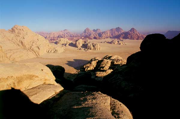 בבוקר, בלב המדבר של הכפר בוואדי רם, פסגות צצות מכל מקום, שיפולים של מדרון, מצוקים גבוהים, רכסים וגבעות, סלעים מקופלים זה על גבי זה וחול בין לבין. אמנם הכל צבוע בחום, אבל נראה שבנוף שולטים אינספור גוונים, והם מחוזקים בנגיעות של אדום ושחור. החושך במקום עושה רק טוב לבוקר שמגיע אחריו.