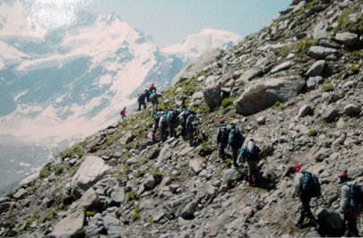 לכל מטפס הרים יש את הסיפור שלו של איך הוא התחיל לטפס. זה הסיפור שלי. את יחסי עם ההרים התחלתי בניו-זילנד, עוד לפני שבעצם התחלתי לטפס עליהם. בינואר 2007 עזבתי את ארצנו הקטנה על-מנת לטעום קצת מנפלאות העולם. לא יצאתי עם איזו שהיא תכנית ברורה, מעולם לא אהבתי לקרוא ולברר. התחנה הראשונה הייתה ניו-זילנד, וכאן הכול התחיל. כשהבנתי את האפשרויות האין-סופיות של המדינה הזאת לפעילויות טבע, פצחתי במסע טרקים מאומץ. במהלך ארבעה חודשים הלכתי כמעט את כל האי-הדרומי. במהלך הטרקים הרבים נדהמתי מכל פסגה לבנה ולאט לאט התחיל לצמוח בקרבי הרצון העז להגיע אליהן. התחלתי לברר ולרחרח על איך וכמה. למדתי שיש ספורט כזה שנקרא טיפוס הרים (בחיי שלא ידעתי לפני) ושיש למעשה שתי אפשרויות להיכנס אליו. הראשונה והזולה היא דרך חברים, אין לי חברים שמטפסים הרים כך שאפשרות זו נפסלה מייד. האפשרות השנייה היא לעשות קורס בסיסי ולקחת את זה משם. טוב, אז ביררתי קצת על קורסים בניו-זילנד וגיליתי שקורס בן שבוע עולה כ-8000 ₪ . לא ממש בתקציב שלי… ירדתי מהנושא ונסעתי לצפון הודו כדי להמשיך את מסע הטרקים שלי בהימלאיה. אני לא חסיד גדול של ספרי הלונלי-פלאנט, אבל הרגשתי שלהודו אני צריך אחד כי לא כ"כ פשוט למצוא שם מידע כללי (אוטובוסים, מקומות לינה וכו'). תוך-כדי רפרוף בספר במהלך הטיסה מניו-זילנד להונג-קונג, נתקלתי בפסקה המספרת על קורס טיפוס הרים שניתן לעשות בצפון הודו ועלותו 2500 ₪. המחיר הזה כבר נשמע לי קצת יותר סביר. נחתתי בדלהי בתחילת יוני. למי שלא מכיר, יוני בהודו זה קיץ וקיץ בדלהי זה גיהנום. נשארתי לילה אחד בעיר ולמחרת תפסתי אוטובוס לצפון הקריר יותר. ביררתי עוד קצת פרטים על הקורס ולמדתי שהארגון שמעביר את הקורס הוא למעשה המכון הלאומי לטיפוס הרים של הודו הנקרא Mountaineering Institute. ישנן שלוש שלוחות למכון בצפון הודו, כל אחת במדינה אחרת- 1) במדינת ווסט בנגל (West Bengal) בעיר דארג'ילינג (Darjeeling) נמצאת השלוחה Himalayan Mountaineering Institute. בנוסף למדתי שהקורס אורך כחודש ימים והכל כלול במחיר (ציוד, אוכל, לינה וכו'). נשמע לי כמו עסקה מצויינת ונרשמתי לקורס שנערך ביולי, במאנאלי. לא אספר פה על היטלטלותי בדרכים באוטובוסים המקומיים של ההודים, רק אגיד שזאת חוויה בפני עצמה. הגעתי למאנאלי יומיים לפני הקורס, מצאתי את המכון והתמקמתי באחד מהחדרים הרבים. המקום הוא למעשה פנימייה שהוסבה למכון לטיפוס הרים. שמו כמה אחיזות מלאכותיות על הקירות, כמה ציורים ותמונות של מטפסי הרים ואת סמל המכון בכניסה. מעבר לכך המקום הוא כמו כל פנימייה אחרת, אפילו יש חורשה ומגרש כדור-סל. דבר חשוב נוסף, מגרש המסדרים. מסתבר שהקורס נערך במתכונת גדנ"ע. עם מסדרי בוקר, הקשבים, מד"סים ואפילו עונשי משמעת (שכיבות-סמיכה וספרינטים). את עשרת הימים הראשונים של הקורס העברנו במכון. למדנו את כל סוגי הקשרים, טכניקות איבטוח, טיפוס סלע, גלישה ושיעורים תאורתיים. חתמנו על ציוד שכלל תיק, גרזן קרח, קרמפונים (Crampons – הקוצים ששמים על הנעליים בשביל הקרח), רתמה, טבעת קפיצית, שק"ש, חליפת-סערה, מגפי טיפוס הרים וכו'. למעשה הדברים היחידים שהיינו צריכים להביא לבד היו כפפות, משקפי-שמש (חשוב מאוד!) ונעלי ריצה (שקניתי בשוק במאנאלי בעשרה שקלים). כל בוקר יצאנו לאימון בוקר שכלל הליכה וריצה עם התיק (כשכל הציוד בתוכו) ופק"לים, כהכנה להרים. לאחר עשרת הימים האלה עברנו למחנה בהרים, למרגלות ההר אינדראסאן (Indrhasan), בגובה 3,000 מטר. המחנה נראה כמו תפיסת קו בשטחים. יש אוהל מטבח וטבחים, יש אוהל אפסנאות, יש תורן עם דגל של המכון וכל אחד חפר בור אישי ממש עמוק בתור שירותים. כל צוות קיבל אוהל שמונה והיתה תחרות בין הצוותים מי בונה את האוהל הכי מהר. כל אחד קיבל כלי מטבח אישיים ממלחמת-העולם הראשונה ובארוחות עמדנו בתור לקבל את האוכל. אוכל הודי. כלומר : אורז, שעועית ועדשים, ירקות מבושלים, צ'אפאטי (סוג של לחם) וצ'אי. לאחר שבוע במחנה הזה, עברנו למחנה גבוה יותר, בגובה 4,500 מטר. את הציוד האישי סחבנו לבד ואת 