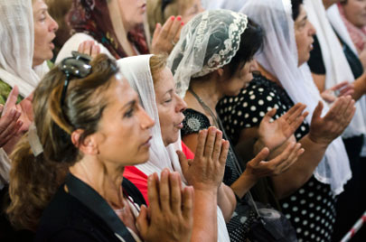 נשים ארמניות מתפללות. אם תכבדי את קוד הלבוש המקומי, יכבדו אותך