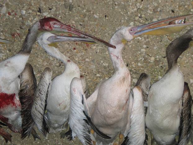 עונת הנדידה של השקנאים בעיצומה, ובמהלכה עתידים לעבור בארץ יותר מ- 70 אלף שקנאים בדרכם מאירופה לאפריקה. כ-40 אלף מהם נוהגים לעבור דרך עמק החולה והיתר נודדים לאורך חוף הים התיכון. חובבי הטבע והצפרים מקבלים אותם בברכה, אולם דייגים רבים לא ממש מתלהבים. זאת משום שהשקנאים מסבים נזק לענף הדיג, מכיוון שהם נוהגים לשלות "צידה לדרך" מתוך בריכות הדגים. כמה דייגים החליטו לפתור את הבעיה בדרך קשה ואכזרית – הם פשוט יורים בשקנאים, במטרה לגרש אותם מהאזור. כך, למשל, נמצאו מעל 100 כדוריות עופרת בגופו של שקנאי שנמצא בשבוע שעבר בנמל חיפה והובא לטיפול רפואי על ידי אנשי רשות | | בגופו של השקנאי הירוי נמצאו מעל 100 כדוריות עופרת | צילום: אוהד הצופה, רשות הטבע והגנים |