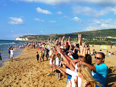המוחים יצרו גל אנושי באורך של קילומטר על החוף, סמל להתנגדות לתוכנית לבנות כפרי נופש בחוף הייחודי