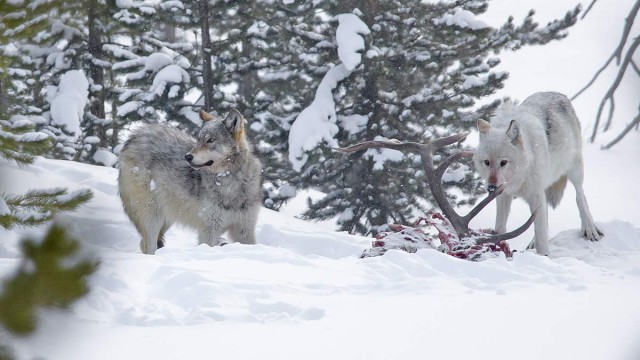 למשל, כשגילינו פגר של אייל קנדי (Elk) יום קודם, ידענו שזה המקום להמתין לכל אלו שמזונם הוא בשרו של האייל. וכך מצאתי את עצמי בחוויה חד פעמית צופה במשפחת זאבים שהגיעו לסעודת מלכים. כמה מהזאבים הטמינו חתיכת בשר במקום מרוחק, כדי לחזור מאוחר יותר ולסעוד בשקט ובבטחה.