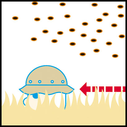 היכנס לתוך מבנה מהר ככל האפשר. אם אין שום מחסה בסביבה, רוץ בין שיחים או בין עשבים גבוהים.