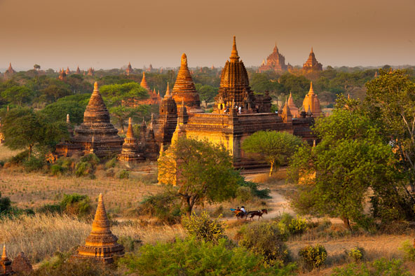 בגאן, מיאנמר על גדות נהר אירוואדי האדיר, החוצה את מיאנמר (בורמה) לכל אורכה, נמצא אחד האתרים הארכיאולוגיים המרשימים באסיה. אלפי מקדשים עתיקים פזורים על פני שטח של 40 קילומטרים רבועים, מוקפים בצמחייה ירוקה. המקדשים והסטופות (מבנים אטומים בצורת פעמון המכילים שריד קדוש כלשהו, כמו שיער או שן), נבנו ברובם בין המאות ה-11 ל-13, והם מזדקרים מעל המישורים באופן דרמטי ומושך. יפה במיוחד לטייל כאן בזריחה או בשקיעה, אז האתר כולו נבצע בצבעי כתום- אדמדם. כדי להתרשם מעוצמתו וגודלו של המקום, מומלץ לטוס מעליו בכדור פורח, רצוי בזריחה, אז הקסם פשוט אינסופי. אתר המקדשים בבגאן. יפה במיוחד לטייל כאן בזריחה או בשקיעה