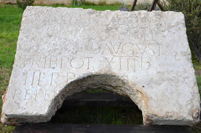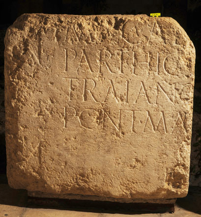 לדברי אקר וכותן, זוהי כתובת שהקדיש הלגיון העשירי, המכונה פרטנסיס, לקיסר הדריאנוס בשנת 130-129 לספירה. מהניתוח שלהם עולה, כי שבר הכתובת הוא מחציתה הימנית של כתובת שלמה, שחלקה האחר התגלה לקראת סוף המאה ה-19 בקרבת מקום על ידי הארכיאולוג הצרפתי שארל קלרמון-גנו. כתובת זו מוצגת כיום בחצר המוזיאון הפרנציסקני הסמוך לשער האריות.