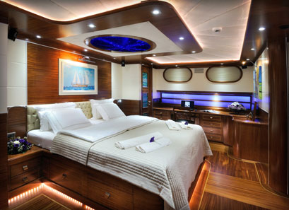 2. יאכטת גולט הגולטים נכנסו די מזמן לשוק הפאר עם יאכטות גדולות, מרווחות ומפנקות, ועם צוות מקצועי שיודע לתת שירות ללקוח. במחיר של כ-20 אלף אירו לשבוע תוכלו לשכור גולט מפוארת של 40 מטר, עם שישה חדרי שינה מפוארים ומרווחים, כל אחד עם חדר שירותים צמוד. ל-12 האורחים ידאגו חמישה אנשי צוות הכוללים קפטן, חדרניות, שף פרטי ודיילות. במהלך החופשה החלומית על הגולט, כל מה שיעלה ברוחכם יהיה בהישג יד, כמו למשל טיפולי ספא על היאכטה על ידי מסז'יסט מקצועי, הפקת מסיבה פרטית רק עבורכם במפרצון קסום, כולל די.ג'יי ועוד. הגולט מאובזרת ברשימה ארוכה של אביזרי נוחות, כמו גם צעצועי ספורט ימי, עם אפשרות להזמין מראש ג'ט סקי וציוד לסקי מים, וכמובן – אוכל גורמה כיד המלך. .jpg) כשהתקציב אינו מוגבל, סוויטת השינה נראית כמו במלון בוטיק איכותי במיוחד