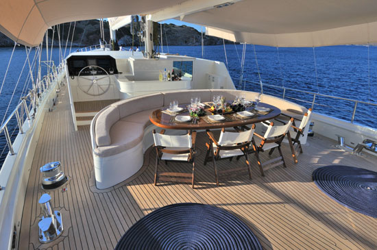 1. מגה יאכטה בנישה של המגה יאכטות – כל העולם פרוש לפניכם, עם דגש מיוחד על תורכיה ויוון, שנמצאות ממש מעבר לפינה ובעיני רבים נחשבות לגן עדן עלי אדמות. היאכטה – חמישה חדרי שינה, צוות של שבעה כולל קפטן, מהנדס, שף, שני אנשי סיפון ושתי דיילות (חדרניות ומלצריות), פרק שרק תמונות יכולות להעביר ופינוקים של 24/7 לאורך כל שבעת ימי השייט. פינות ישיבה נוחות שפזורות על פני הסיפונים השונים, מגוון "צעצועי ים" (אופנועי ים, גלשנים, קיאקים וכדומה), ג'קוזי, טלוויזיות LCD עם DVD, בר מפנק ועוד ועוד. .jpg) ג'קוזי על הסיפון