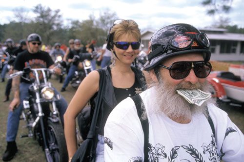 בפלורידה שורר קיץ כמעט כל השנה, וקיץ פירושו התרחשות ענפה ונושאי צילום רבים. ואכן, פלורידה היא הפנינג אחד גדול ומתמשך: במזרח המדינה יש חופים יפהפיים הומי אדם, מסיבות פרועות ואירועים ביזריים. דייטונה ביץ' למשל, השוכנת על החוף המזרחי, חיה ממש מאירוע לאירוע, ואם לא מתקיים בה פסטיבל כלשהו, בעלי העסקים אינם טורחים בכלל לצאת מהבית. אבל זה לא קורה הרבה. בעצם כמעט אף פעם. בדייטונה ביץ' מתקיימים כמה כנסי אופנוענים, והגדול שבהם הוא Bike Week (הכנס הבא יתקיים בתאריכים 4־13 במרץ 2005). לכנס מגיעים כ־300 אלף(!) אופנוענים, |