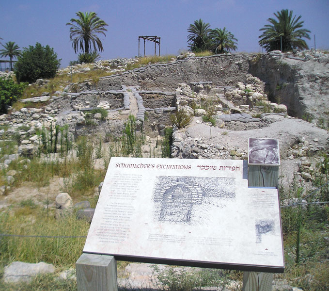 שלט הסבר על התל. הממצאים הרבים שנחשפו בתל הם כקרעי דפים הפזורים על הקרקע, וכדי לקרוא את העלילה הכתובה בהם על הארכיאולוגים לכרוך אותם כסדרם צילום : עמי בן בסט