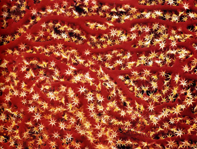 אלמוג מניפה עם פוליפים, בעלי החיים שבונים את האלמוג. מצב השוניות בצד הירדני טוב במידה רבה מזה של אחיותיהן באילת