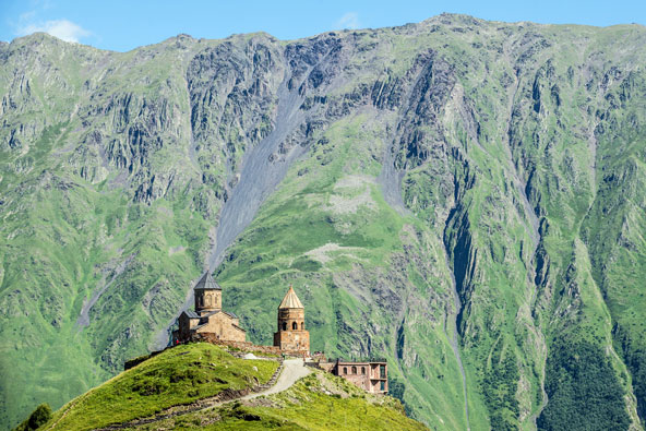 בתמונה הפותחת: כנסיית השילוש הקדוש בקווקז הגבוה בגאורגיה. "גאורגיה היא מערת קסמים", אומרת אנסקי