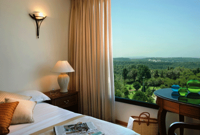 חדר באחוזת יערות הכרמל. הנוף מהחדרים תורם לרוגע ולתחושת הניתוק