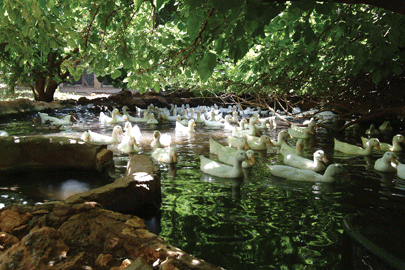 מצפה הימים. חורש טבעי, בוסתנים, גינות תבלין ובריכות נוי עם ברווזים וברבורים