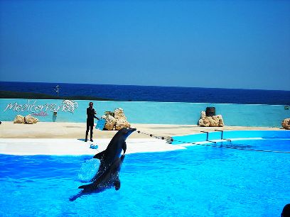 מופע דולפינים במדיטרנו מארין פארק | צילום: Erik1980, cc-by-sa 3.0
