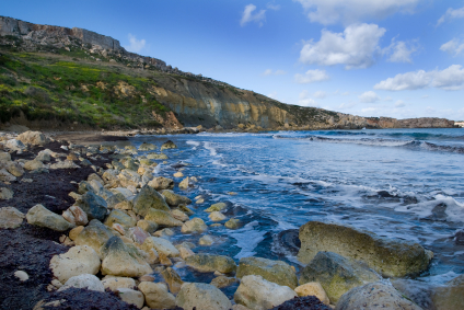 מפרץ מבודד עם מצוקי כורכר. במלטה כ-200 ק"מ של חופים | צילום: מייק גאט