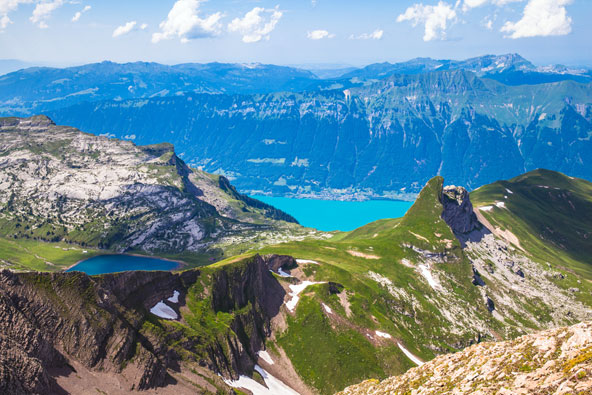 אין כמו להכיר מקום חדש דרך הרגליים. הנופים הנפלאים הפרושים מכל עבר, בלי חציצה או חלון של מכונית או רכבת, האוויר הצלול, העצירות הקטנות – להציץ מקרוב על פרח יפה, להקשיב לציוץ הציפורים, לנוח כמה דקות על צוק התלוי מעל אגם. ועוד לא הזכרנו את הפעילות הגופנית המתגמלת הכרוכה בהליכה. אירופה מציעה כמה מסלולי הליכה ארוכים, חלקם מאתגרים מאוד, אבל הפעם בחרנו דווקא במסלולים קצרים, בני כמה שעות עד יום, שאפשר לשלב בקלות בחופשה עירונית או בטיול ברכב. אבל שימו לב, אורך המסלול לא בהכרח מעיד על רמתו: חלק מהמסלולים המוצעים כאן מאתגרים למדי והם כוללים עליות, לעיתים תלולות וממושכות. ובכל זאת, הנוף שמחכה בקצה העלייה תמיד מצדיק את המאמץ. הנה המלצות למסלולי הליכה קצרים ומהנים במיוחד, שעוברים דרך הנופים הכי יפים באירופה: שווייץ: מסלול פאולהורן באלפים הברניים אזור האלפים הברניים שבשווייץ מציע כמה ממסלולי הטיול היפים ביותר באירופה, עם פסגות דרמטיות מעוטרות בשלג, אגמים צלולים, כרי מרעה ירוקים מנוקדים בפריחה אלפינית ובתי עץ מסורתיים. האזור מציע מסלולי טיול רבים בדרגות קושי שונות. אחד היפים שבהם, שמציע תמצית מרוכזת של כל היופי השוויצרי הזה, הוא המסלול בהר פאולהורן (Faulhorn), שההליכה בו חושפת את המטיילים לכל הפסגות המדהימות של האזור בזו אחר זו – אייגר, יונגפראו, מונש ולבסוף השרקהורן, שמשתקף במימיו של אגם באחאלפ (Bachalpsee). הליכה באלפים הברניים בקיץ מזמנת פריחה נהדרת לצד פסגות מושלגות | צילום: jungfrau.ch