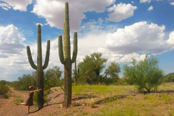 ביציאה מטוסון רכשנו שישה ליטר של נוזלים ועשרים פאונד של קרח. זה הרגיש מתבקש. מיד מחוץ לעיר התמלא המדבר מליונים של קקטוסים זקופי קומה, שטיפסו מהמישור אל רום הרים משוננים. במרחק השתוללו סופות ומסכים של גשר ירדו על פני הישימון. מערבולות "שדוני אבק" חמקו מהן, תובעות את כבוד היובש. מסתחררות מסתחררות הן חצו את הכביש ממש לפנינו. ברק הכה, קשת נתגלתה. ופתאום התמלא הרקיע בכל העננים האפשריים, רבי צורות משונות ובלתי מוכרים, כמו תמונות בתפריט בארוקי של מסעדה סינית למתקדמים. עברנו בשמורה ילידית ובה מצאנו עיירה קטנה עם סופרמרקט מאובזר, בית ממשל של השבט וגן שעשועים קטן, שנשים גדולות גוף מכרו בו לחם מטוגן, ממולא בבשר מפולפל או בשעועית. זה היה טעים יותר מכל העגבניות בטוסון. המשכנו בין הרים שטוחים לחלוטין ונקיים מצמחיה. הם בכלל לא היו הרים, אלא תלים שהקיפו פיר מכרות עצום. ברגע שהבנו את זה – הגענו לפורטוגל. עיירת מכרות בשם אהו עוצבה בימי מלחמת העולם הראשונה בסגנון דרום אירופאי, שאין קשר בינו ובין יתר ארה"ב. החנינו את הרכב בכיכר היפה ויצאנו לספוג כיפות לבנות וצריחים, אבל החום היה רצחני. באמת רצחני. חזרנו לרכב והמשכנו, אל מישור רחב מהקודמים וחם כל כך שאפילו הקקטוסים מתים בו. כל כולו עפר ורוד, נמתח אל האופק, ושיחים עקשניים, נערצים.