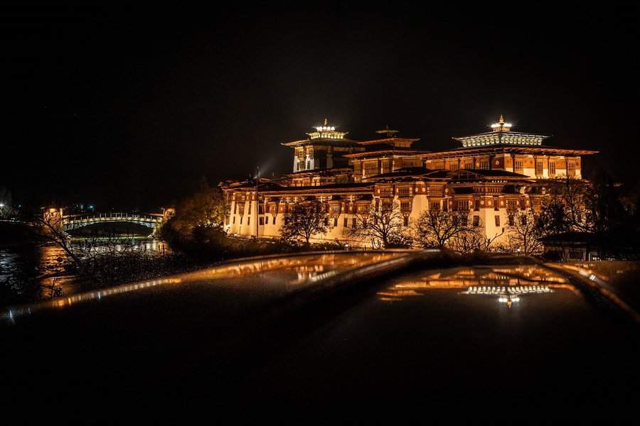 הדזונג של פונאקה: שני צילומים מאותו לוקיישן – צילום לילי בחשיפה ארוכה ובמהלך היום. דזונג הוא סוג של מבצר ומנזר בעל עיצוב ארכיטקטוני ייחודי. מבצרי הדזונג משמשים כמרכזי דת, צבא, מנהלה וחברה עבור המחוז בו הם שוכנים בבהוטן. הם משמשים לרוב כאתרים המרכזיים לפסטיבלים בודהיסטים