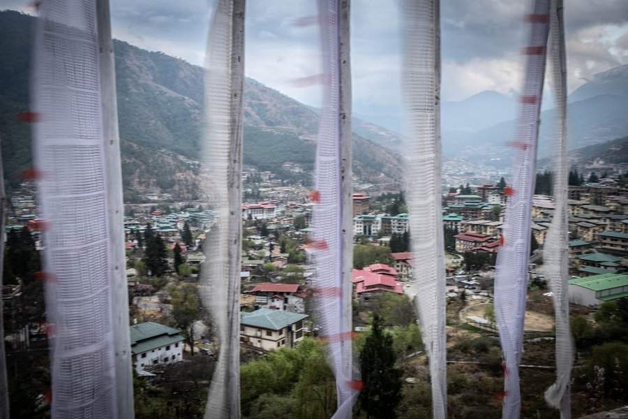 טימפו, בירת בהוטן. המבנים עם הגג הירוק הם מבני ממשלה – משרדים ובתי מלון. המבנים בעלי הגגות האדומים – הם מבנים פרטיים. על פי החוק לא ניתן לבנות מעל לשש קומות ויש לשמור על צביון האדריכלות המסורתי
