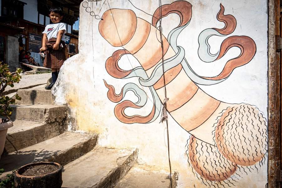 גן עדן לחובבי "ז'אנר הפאלוסים": רבים מהבתים בבהוטן, מציירים על קירות הבתים פאלוסים גדולים. מטרתם לגרש את השדים הרעים מהכפר ומהבתים בערים, באמצעות האון שלהם. למעשה ניתן לראות בהם, סוג של מזוזה. אמצעי כנגד עין הרע.
