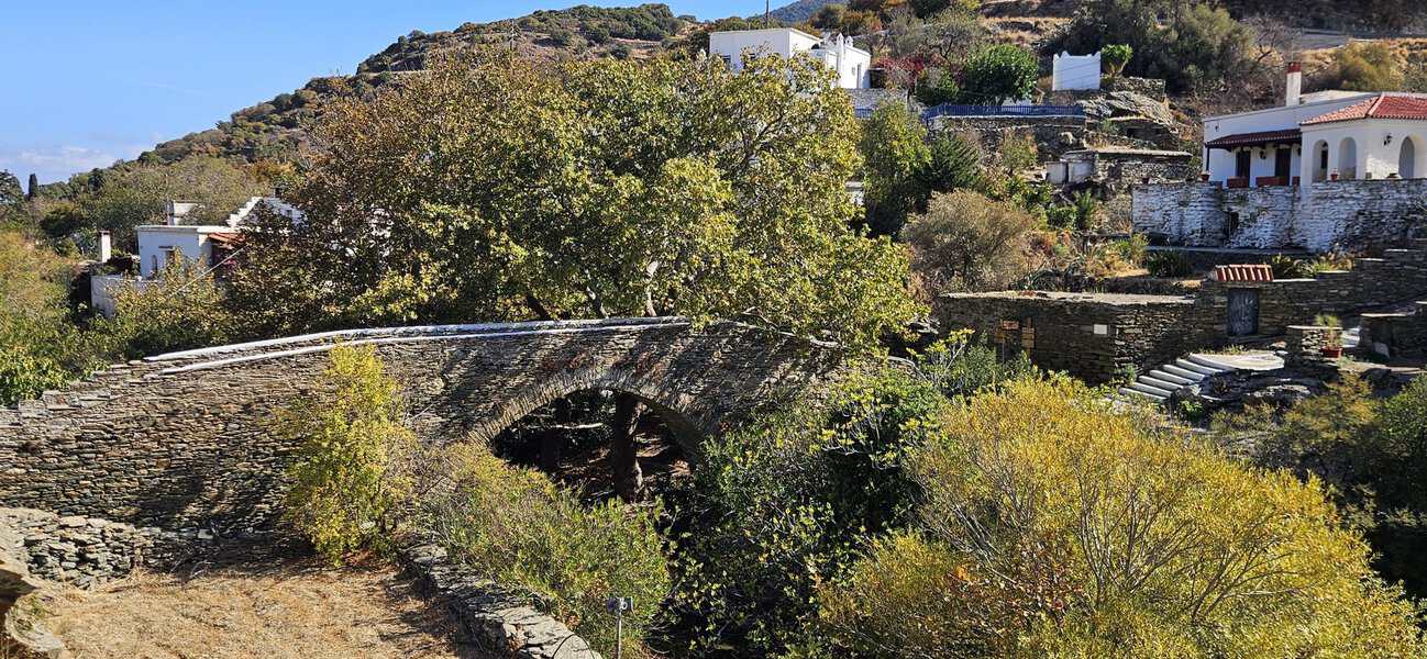 חשיבות המים מתבטאת בטרסות הבנויות בצורה יבשה מאבני צפחה שאופייניות לנוף החקלאי של אנדרוס וראויות לכתבה משלהן. דימטריס, בנאי האבן המופלא שלנו, שחושב וחולם סלעים ואבן, אומר שאין בנייה באבן ביוון כמו באנדרוס. חלק מהטרסות מתוארכות ל-2,000 שנה ואף יותר. הבנייה באבן מאפיינת את האי אנדרוס, ובמיוחד הטרסות, וכמותה גם בניית רשת תעלות מים המובילות מים ממעיינות ההרים והערוצים אל המישורים הקטנים לצורך השקיה ומילוי מאות מאגרי מים וטחנות מים ששימשו לטחינה של דגנים ותירס.