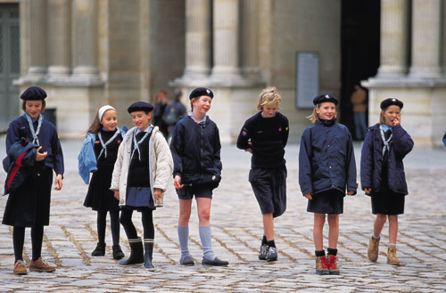 שבט צופים. עם בוקר, מבקרת קבוצת הילדים בחצר הסגורה של מוזיאון הלובר