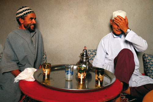 עבדסלם, השייח' של האחוואש מאזור טידילי, שותה תה עם חברו מוחמד