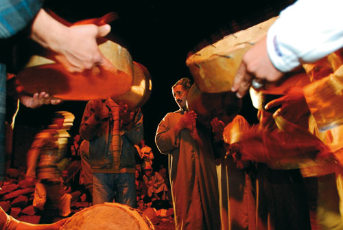 במרכז הכפר טורוט, לאורה של מנורה אחת דלה בלבד, התחיל הטקס המיוחל. ראינו את הגברים מותחים את עורות התופים מעל מדורה. הם ישבו במעגל מתופפים צפוף ושרו, ומולם עמדו הנשים, נעו מצד לצד, מחאו כפיים, שרו ורקדו. נחשון הוציא את מצלמת הווידאו ונפתלי התארגן עם המצלמות שלו. מתחת למנורה הבודדת שהאירה את הרחבה באור עמום התקבצו כל תושבי הכפר. בהתחלה התקבלנו בסבר פנים יפות. מעודדים מקבלת הפנים, התחלנו בעבודת התיעוד, אבל עד מהרה התבקשנו להפסיק לצלם את הנשים מפאת הצניעות. כמה אנשים שאלו בחשדנות מי אנחנו ומה מעשינו שם. חוסיין הרגיע אותם, וקיבלנו רשות לצלם רק את הגברים.