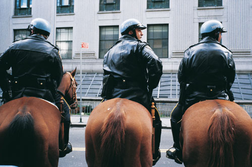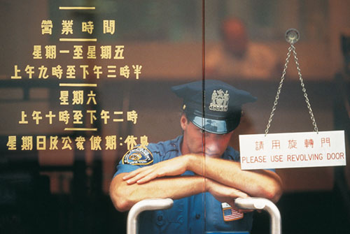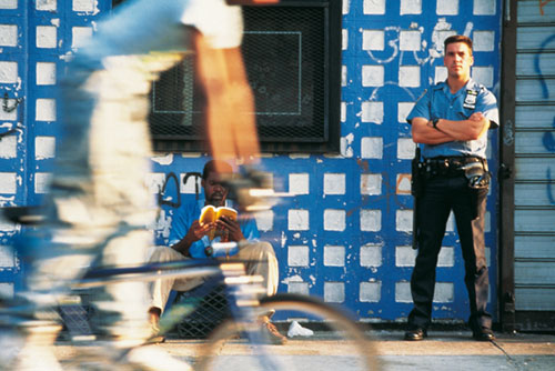 עול בגלל טענות המשטרה שהמקום משמש שוק סמים פתוח לקטינים. עם זיכוי בעליו מהאשמה נפתח המועדון מחדש, וכדי לרצות את הרשויות, הוא גדוש עתה מאבטחים ופועל תחת נוהלי ביטחון שיכולים להתחרות רק עם אלה של אל על. תעודות מזהות של המבלים נסרקות למאגר המידע של המועדון ונבדקות מול רשימה שחורה של אורחים בעייתיים. קופסאות של סיגריות מפורקות בחיפוש הדקדקני שעובר כל בליין עם כניסתו למקום. מאבטחים סמויים מתנפלים על מי שנראה להם כקשור לפעילות סמים וגוררים אותו החוצה ללא מלים. אסור לרקוד בפינה ההיא ואסור לעמוד על הריבוע הזה. אם עברתם על חוקי המועדון ואם לא, ברגע שתחושו את צבת הביטחון לופתת את הזרוע שלכם, תתפוגג מיד כל תחושת בילוי שמועדון ריקודים אמור להעניק. "ניו יורק היא כבר לא עיר החטאים", אומר לי אחד הצעירים המנודים בחוץ. "החיפושים, התעודות והכללים המרגיזים מוציאים את כל החשק וההנאה". משטרת ניו יורק נכנסת אל האלף הבא כמכונה מסיבית של שיטור עירוני. השוטרים קשוחים מתמיד, מהירים ללחוץ על ההדק, לנעול אזיקים ולרשום דו"חות. בשנת 1998 הושמו מאחורי סורג ובריח בבית מעצר 368,073 איש ואשה – מעצר אחד לכל 19 תושבים בערך. ראש העיר, רודולף ג'וליאני, אינו מסתיר את חיבתו לכוח המשטרה שלו. מחלקות עירוניות אחרות מתלוננות על כך שהעירייה מדשנת את המשטרה בתקציבים אדירים בזמן שהן סובלות ממחסור מתמשך במשאבים. ג'וליאני ועוזריו מציגים גרפים וטבלאות להמחשת הירידה הדרסטית, העקבית וחסרת התקדים בשיעורי הפשע בעיר. לג'וליאני יש עבר מרשים כתובע פדרלי אגרסיבי ומצליח. כשרץ בפעם הראשונה לראשות העיר, הכריז שאחד מיעדיו המרכזיים לכשייבחר יהיה צמצום הפשע בניו יורק. היום ברור שהוא כבש את היעד, אך רוב אזרחי העיר כבר מסתייגים מהטרור החוקי של המיליציה של ג'וליאני. לא כדאי להתעסק עם השוטרים של ניו יורק. אל תניחו לרגע שלא צופה בכם עין משטרתית. דווקא כשנראה שאין אף אחד ברחוב, מגיח זוג שוטרים מעבר לפינה בהליכה איטית. מצלמות וידיאו משטרתיות הותקנו בוושינגטון סקוור פארק, בשיכונים ובפינות רחוב המועדות לסחר בסמים, באוטובוסים, ברכבת התחתית ובבתי ספר. השמועות אומרות שמכוניות משטרה מוסוות מסתובבות בעיר ומלקטות צילומים לקטלוג המשטרתי. מפקח המשטרה, הווארד ספיר, אומר שמצלמות מונעות פשיעה וכי הן אינן מכוּונות לחלונות של בתים פרטיים. "אף אחד לא צריך לצפות לפרטיות בשטחים ציבוריים בעיר", הוא מוסיף. חלונות שבורים ו"שוטרים אנונימיים"
