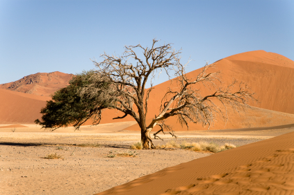 רק שני מיליון בני אדם חיים בנמיביה, מדינה ששטחה יותר מ-800 אלף קילומטרים רבועים – פי ארבעים משטח ישראל. תוחלת החיים בנמיביה נמוכה- כ-42 שנים, והידבקות באיידס נחשבת לאחת הבעיות הגדולות שמעיבות על החיים בה, אבל כל אלה מתגמדים לעומת האוצרות העצומים שיש לנמיביה להציע. המדינה בקצה אפריקה זכתה לעצמאות ולהכרה רק בשנת 1990. מחצבים הם האוצר הבולט ביותר של נמיביה. כריית מחצבים מהווה עשרים אחוזים מן הכלכלה המקומית. היא נחשבת לאחת מיצואניות היהלומים הגדולות בעולם. נמיביה היא היצואנית הרביעית באפריקה של מינרלים והספקית החמישית בגודלה בעולם של אורניום. כמו כן כורים בשטחה כמויות גדולות של כסף ומתכות יקרות נסופות. נמיביה מייבאת בדרךך כלל מחצית מכמויות התבואה שלה ובשנות בצורת אפילו יותר. נתונים רבים של האו"ם מציגים את נמיביה כמדינה המובילה בעולם בתחום אחד: חלוקה לא שוויונית של ההכנסות – לצד עשירים מופלגים שקשורים לכריית היהלומים יש במדינה עניים רבים מאוד. יותר משליש מן האוכלוסייה בנמיביה חי מדולר אחד ליום. כמעט שני שלישים מן האוכלוסייה במדינה מתקיימים משני דולר ליום. בתחום הנסיעות והתיירות נחשבת נמיביה למדינה מרתקת במיוחד. יש בה כמה שמורות טבע חשובות ומעניינות ובשנים האחרונות התפתח בה מאוד תחום טיולי הספארי. • ביקור בנמיביה » סרטון – מסע אל פילי מדבר נמיב עם דנדן ולילך בולוטין: לקריאה נוספת: