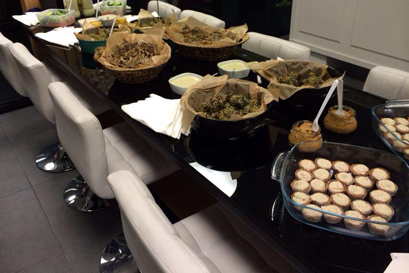 כל זה אמנם נשמע אינטנסיבי מדי, לפחות למתחילים שבינינו, אבל כל אחד רשאי להעמיק או לשחרר בתרגול על פי יכולתו. מה שבטוח זה, שביום המחרת, וגם לאחר מכן, הסדנה תלווה אותנו ולא רק בגלל הרגשת השרירים התפוסים… אם נרצה או לא, לאחר תרגול של שלוש שעות הרעב מתגבר. לשמחתנו, בתום הסדנה חיכה לנו בופה טבעוני ואורגני, טעים להפליא, מעשה ידיה של דונה סאלינס. השולחן היה מלא בדברים טובים, משביעים, ובעיקר מזינים את גופנו שעמל כה רב.  הבופה הטבעוני והאורגני שהמתין בסוף הסדנה