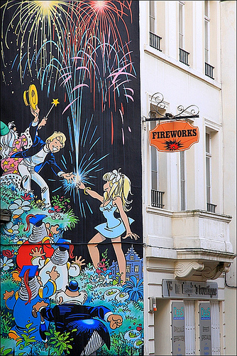 גם מחוץ למוזיאונים ולחנויות ספרים אפשר להתענג על ציורי קומיקס – פשוט צריך להרים עיניים ולהסתכל על הקירות. ברחבי בריסל, בעיקר במרכז העיר, אפשר לגלות לא מעט קירות מצוירים עם דמויות קומיקס אהובות. ההתחלה היתה צנועה: עיריית בריסל שכרה כמה ציירים צעירים כדי שיעטרו בניינים עזובים וקירות חסרי חן. התוצאה המלבבת – הומאז' לאמני הקומיקס המפורסמים – הוסיפה צבע ונוי לעיר ועודדה את המשך הפרויקט. כיום יש לא פחות מ-50 קירות שכאלה בבריסל. גם אם אתם לא מתמצאים בכל רזי הקומיקס הבלגי, תמיד משמח להיתקל בקיר מצויר, שמעלה חיוך על הפנים ומזכיר לא לקחת את החיים ברצינות רבה מדי.
