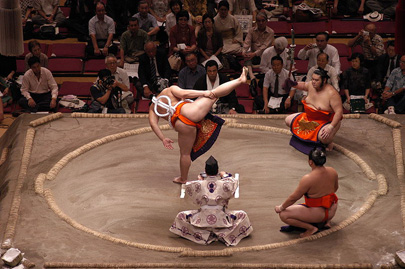 קלינטון, אוסטרלי שגר איתי באותו בית בטוקיו, ניסה פעם לשכנע אותי לצפות בהיאבקות יפנית ששודרה בטלוויזיה. סירבתי בנימוס ובהחלטיות. ספורט ההיאבקות כפי שהיכרתי אותו במערב הוא אירוע אלים, שבו מנסה כל משתתף להכאיב ליריבו, לפגוע בו ולבסוף להצמיד את כתפיו לזירה. "אינך מבין", אמר קלינטון, "זה ענף הספורט שבו מוצגת יפן באור טבעי. אפשר לראות שם טקסים ססגוניים, להבין טוב יותר את מהות השינטו ואם תעמיק, תגלה גם פיאודליזם לשמו". התיאור נשמע מסקרן דיו. עברתי לשבת בחדרו המרווח של קלינטון ושם, מול מסך בגודל 26 אינטש, גיליתי עולם נסתר.