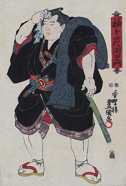 איור משנת 1850 המראה מתאבק סומו. מסורת שקיימת מזה אלפי שנים