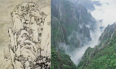 בזמנים אחרים הִרבו יוצריה הרוחניים של סין לצאת ולשוטט בהר, להתבונן בסלעים, בעצים ובחרקים. התבוננות זו בהרמוניה של הקיום הביאה אותם לתובנות, אותן ניסחו בשירים מפורסמים, בסיפורים בני אלמוות ואף בציורים. במקומות רבים חקוקות בסלעי ההרים קליגרפיות של משוררים מפורסמים וציטטות מתוך פואמות גדולות. הסימניות, שהותירו מכחוליהם הקלים של גדולי הקליגרפים, נחקקו על הסלע ומופיעות בין מדרונות זקופים, עצים עתיקים, שנטעו אלמונים לפני מאות שנים, ואותות הקידמה: בתי הארחה, ורכבל, המשמש את אלה שאינם יכולים לטפס ולהגיע אל הפסגה בכוחות עצמם. הדיעה הרווחת בסין היא כי ציירים הם "משוטטים מועדים". רבים מהסינים ציינו בפני כי במסורת הסינית אלו תכונות זהות כמעט, וכי הקשר בין נוודות לציור הוא כמעט עניין מהותי. הציירים הסינים הקלאסיים יצאו לשוטט בהרים, אך מעולם לא הנציחו את הטבע במהלך השוטטות. הציור הוא הרושם העמוק ביותר, החוויה הפנימית של הוויית הטבע, אך הוא נוצר בסטודיו, במנותק מההתבוננות הישירה, מתוך תובנה, המשולבת בטכניקה המורכבת של הציור הסיני – השליטה המושלמת במכחול. ניסיון ליצור "העתק" של הטבע, נחשב למעשה נחות. רק ציור ה"מפרש" את החוויה ומעביר אותה, הוא הציור הטוב. לכן רבים מהציירים הסינים ראו בציור המערבי ציור נחות, משום ששאף להיות "העתק" המציאות. ציור הנוף הסיני, אותו מכנים הסינים ציור "הר ומים", הוא ותיק מאוד ושורשיו עוד בתחילת תקופת חאן (המאה השלישית לפני הספירה). התפתחותו הבולטת, המעבר לציור בדיו על נייר, טכניקה השולטת בכיפה עד ימינו, החל כבר בתקופת טאנג (917־609). לשם השוואה – ציור נוף לשם נוף (לא נוף כתמונת רקע, או כחלק מסצינה, בה האדם או הסיפור האנושי תופסים את המרכז), נסיון תיאור העולם בצורה השואפת לאוביקטיביות, למיקום האדם ביחס לטבע ולא להתמקדות בלעדית בו, החלה בתרבות המערב רק עם הציור ההולנדי, במאה ה־17, כ־1,000 שנים לאחר שציורי הנוף היו לחלק בלתי נפרד מתרבות הציור הסינית. עם זאת, צייר הנוף הסיני לא תיעד נוף, אלא השתמש בו כדי להביע תחושות ומחשבות, אך גם עולם מופשט, בו הציור עצמו, על ערכיו, עומד במרכז. ציור זה עוסק בשפת הציור – הנחת מכחול, קומפוזיציה ועוד – בדומה לציור מופשט בן המאה ה־20. הציירים הגדולים בתקופת סונג, יואן, מינג וצ'ינג, תיארו בציוריהם הרים שונים, בצפון המדינה. סיבת ההתמקדות בהרים בצפון סין היתה בעיקר מעשית: מאז ומתמיד ישבו השלטונות במחוזות הצפוניים, ורבים מן הציירים, שבאו משכבת האינטלקטואלים, היו קשורים לשלטון, ולפיכך שוטטו, בדרך כלל, בהרים שבמחוזות אלה. רק בתקופת סונג הדרומית, עם נדודי כס השלטון דרומה עד לחאנגז'ואו ציירי האסכולה הצפונית עסקו בעיקר בציור הרים גבוהים, אימתניים וצפופים במשיכות מכחול קטנות (משיכות המכונות "טיפות גשם", "שיער פרה", "חיתוך גרזן") רבות וצפופות, בשכבות, זו על גבי זו, תוך שימוש בקשת צבעים שנעה מאפור מהול, לשחור דחוס. המראה הדחוס של פני הסלע המחוספסים ותחושת ההר הסוגר את השמיים, נוצרו באמצעות תוספת של שכבות וקווים. זהו ציור איטי, מיומן, בנוי ומתון. הציירים המפורסמים שבאסכולה זו הם פאן קואן (FAN KUAN), בן תקופת סונג הצפונית, בן דורו לי צ'נג (LI CHENG) ווואנג מנג ציירי האסכולה הדרומית, לעומת זאת, פיתחו את ציור הקו הבודד ואת המשיכה הבודדת של המכחול. בציורים ניתן לראות גבעות שטוחות, מים, ערפילים, פלגים, סירות; פרידה מחברים המפליגים בסירה; חכם זקן היוצא ל"התבונן" בטבע, כשעוזרו הצעיר, נושא את הצ'ין – כלי הפריטה המסורתי, ומכין לו כוס תה להחיות את נפשו. הציור הדרומי הוא מאוורר, בהיר יותר ומהיר יותר. משיכות המכחול הן חד משמעיות וארוכות (משיכות "סוס דוהר" ו"נקודות אורז" הן האופייניות ביותר), כשהצייר משתמש בהרבה מים. התוצאה היא ציור רווי יותר ("WASH"), ספוג אל הנייר ומהיר באופיו. הציור מזכיר את מראה הנוף הלח של אזורי הדרום, את קלילותם הדאואיסטית של יושבי המקום, מול רצינותם הקונפוציאנית של אנשי הצפו