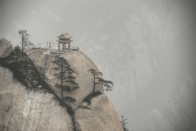 חמש הפסגות של Hua Shan במרכז סין נשלחות אל השמיים כמו עלי כותרת של פרח הלוטוס. אל ראשן מגיעים באלפי מדרגות חצובות בסלע או על שביל קרשים רעוע שתלוי אלף מטרים מעל התהום עודכן 19.5.18 |