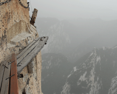 אולי גם אתם קיבלתם את התמונות האלה במייל: קירות מצוקיים שיורדים בזווית כמעט ישרה לקרקע ובאמצעם תלויים כמה קרשים רופפים ועקומים. על שביל הקרשים המבהיל הזה נראים אנשים צועדים, הבטן צמודה לסלע והידים אוחזות בשרשרת שתלויה מעל. התגובה הראשונה היא זעזוע, ומיד אחריה עולים הספקות – אין דבר כזה, זה לא אמיתי, כנראה עבודת פוטושופ של חובב מחשבים משועמם.