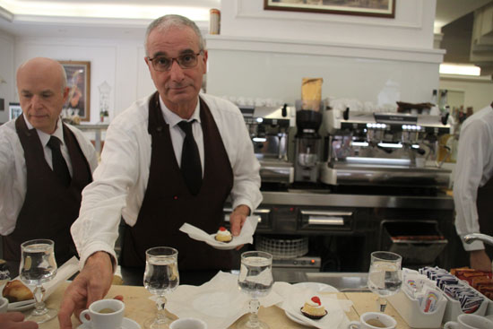 לפי כל כללי הטקס. מלצרים מעונבים בבית קפה מקומי
