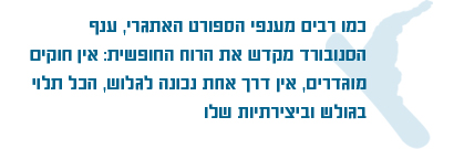בכל שנה קורה לי אותו הדבר: בערך באמצע הקיץ אני מרגיש שהברכיים שלי מתחילות לרעוד מעצמן, אני צריך להרגיש קצת שלג מתחת לרגליים שלי כמו נרקומן שצריך את המנה שלו. באותו רגע של חולשה אני אומר לעצמי "תירגע, יש עוד כמה חודשים של חום וזיעה עד לחורף", ולפעמים זה עוזר ואני יכול למשוך עד החורף. גם מי שלא אוהב חורף או קור חייב להודות ששלג זה אחד המשקעים היפים והמרשימים ביותר על כדור הארץ. הוא נופל לו בעדינות ובשקט מהשמים, מכסה את ההרים בשכבה לבנה ונקייה. שלג הוא אבן היסוד של אחד מענפי הספורט הקיצוניים ביותר שקיימים על הפלנטה – הסנובורד.